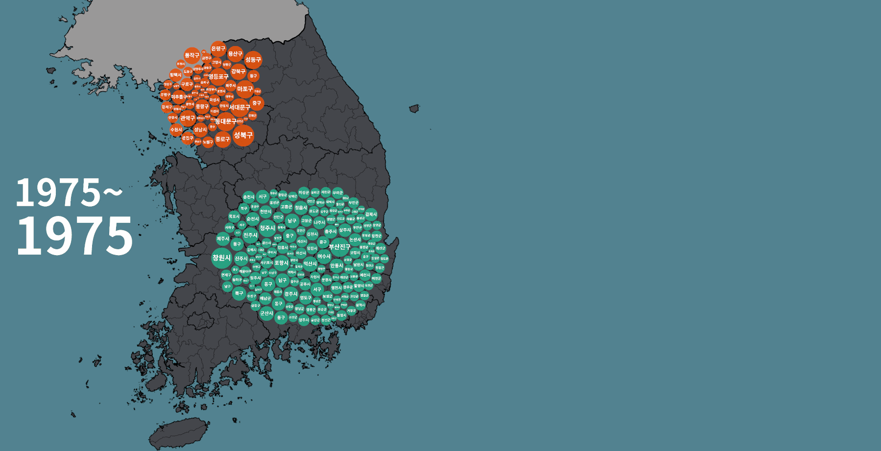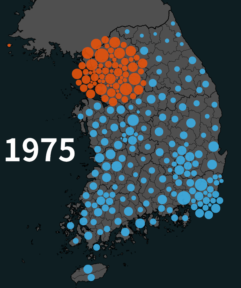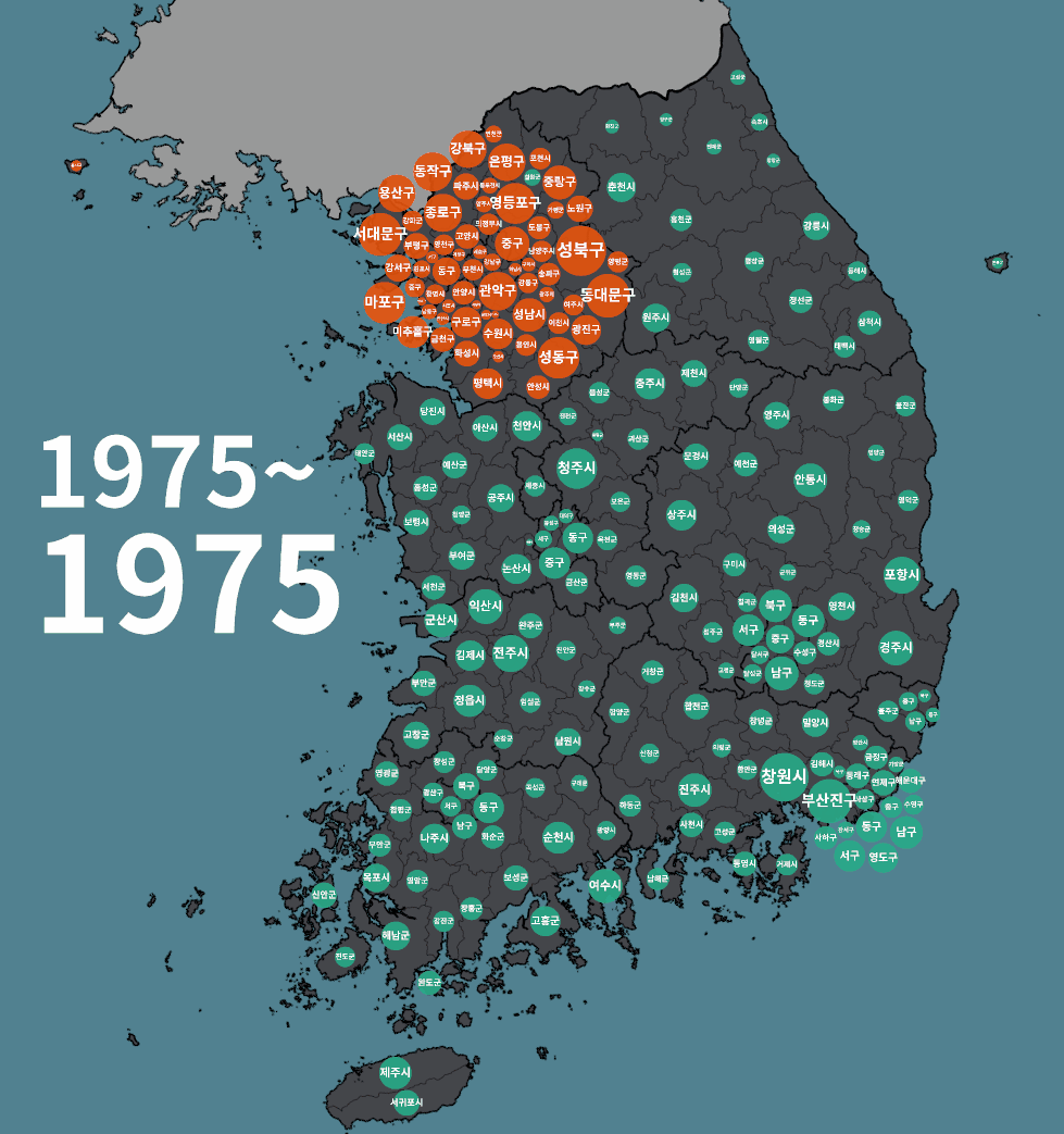 대한민국 시군구 인구 변화 시각화(1975~2020)