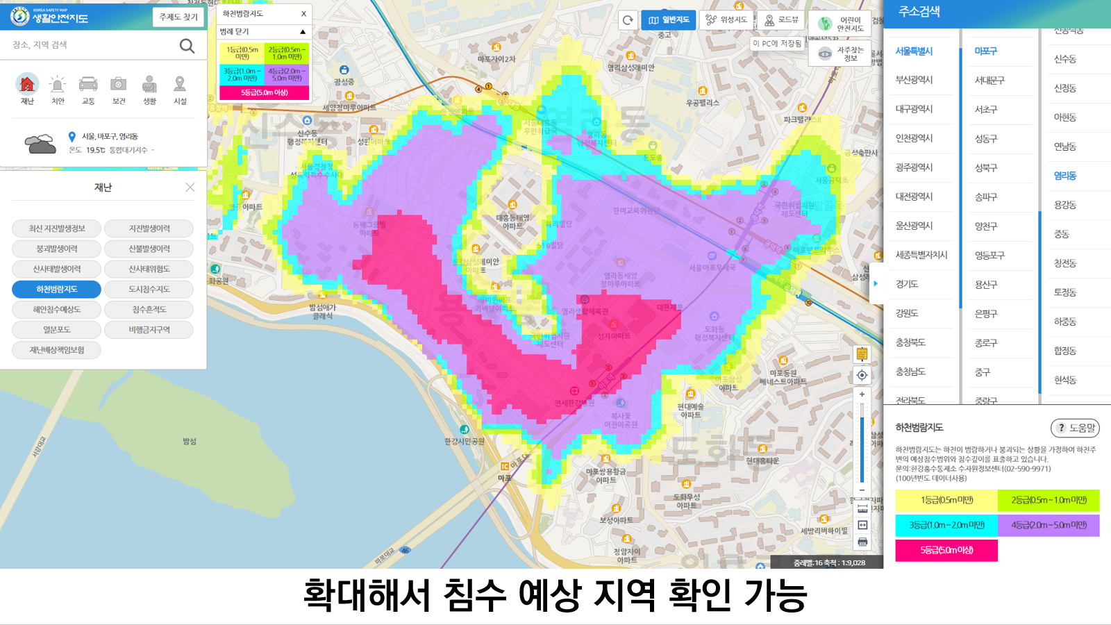 확대하면 자신이 사는 곳의 위험도를 확인할 수 있다.