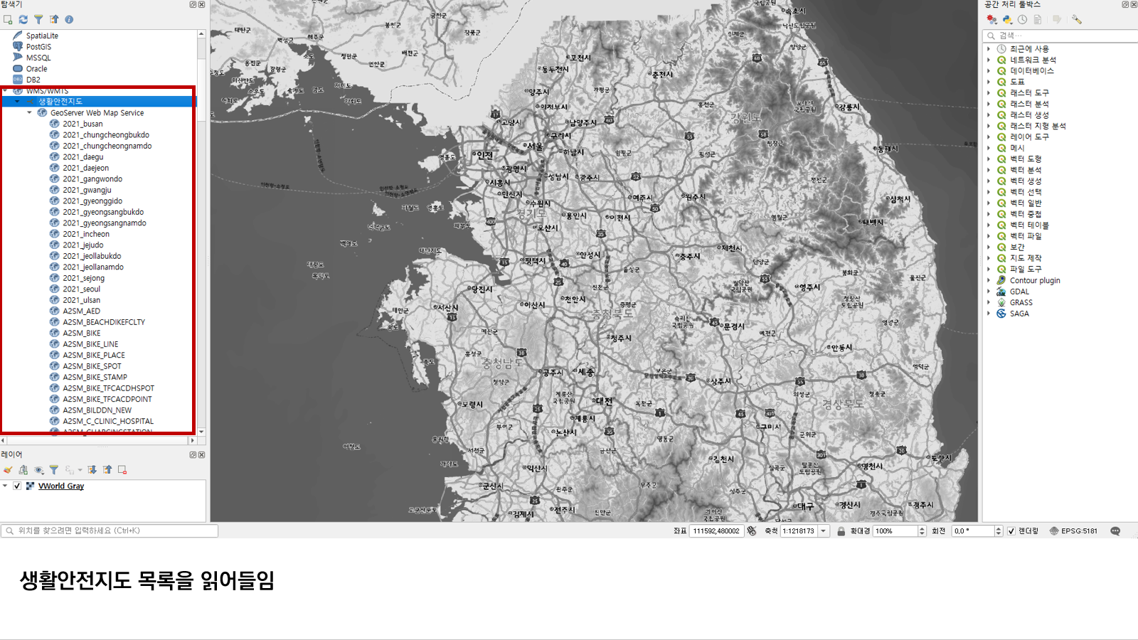 그러면 생활안전지도 목록을 읽어들이게 된다.