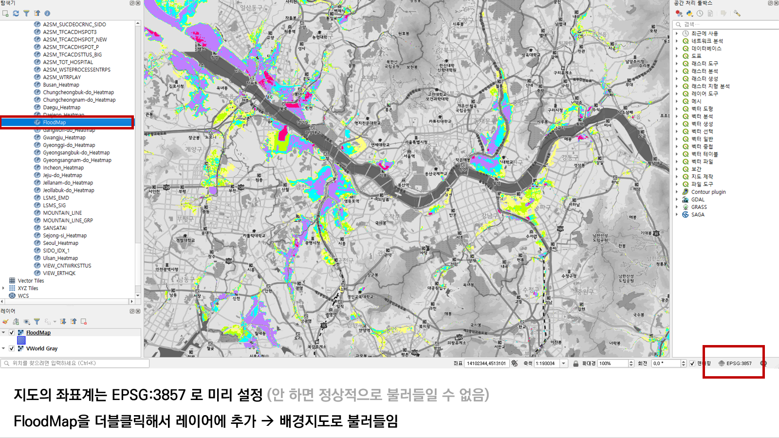 그리고 지도목록 중 FloodMap을 읽어들인다.