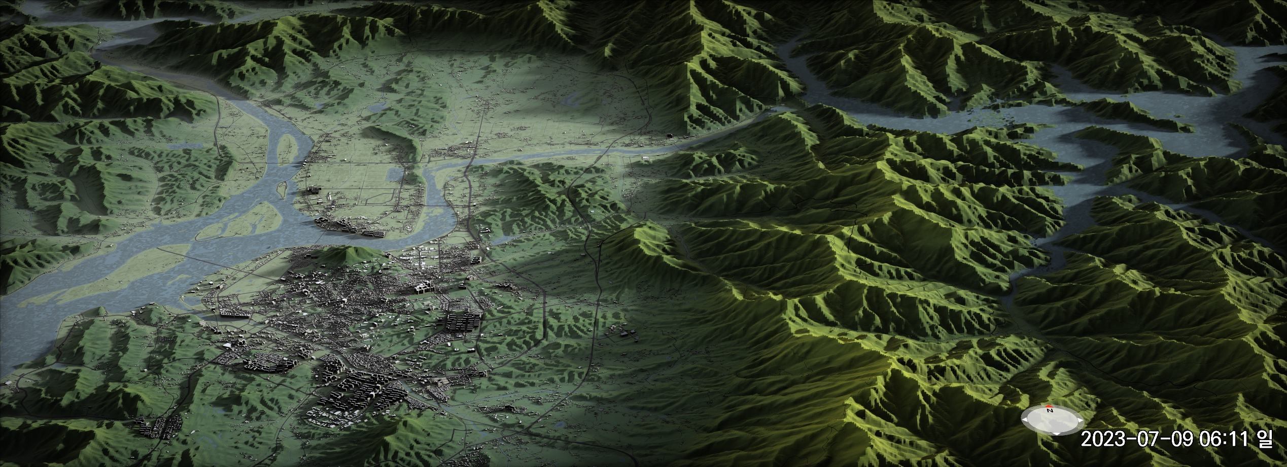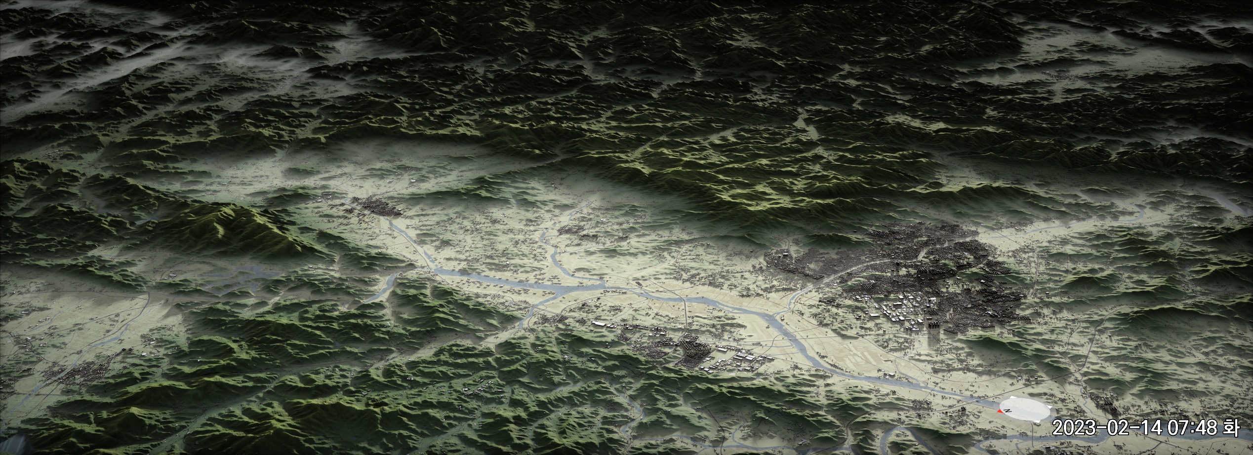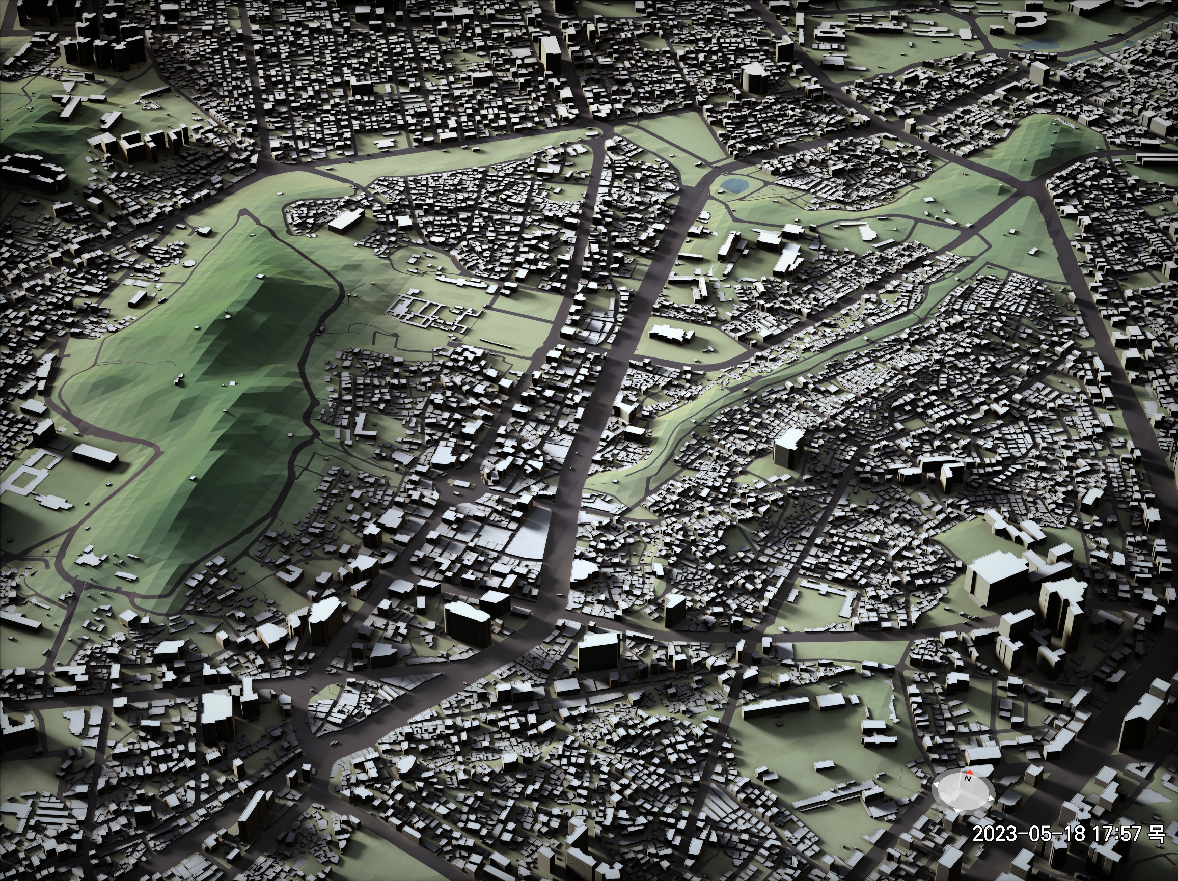 위에서 링크된 메시 셰이더 작업에서는 건물 1766MB, 하천 386MB, 도로 1669MB, 지형 1214MB의 데이터를 사용했다. 아래에서 설명하는 작업에서는 하천과 도로를 지형과 같은 그리드 크기로 잘게 분할하느라 용량이 각각 두 배 가량 늘어났다. 총 7GB 정도의 데이터가 되었다.