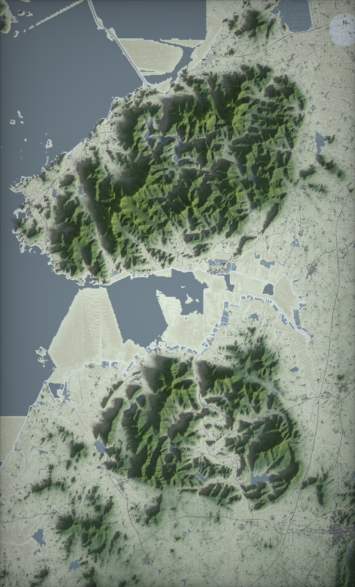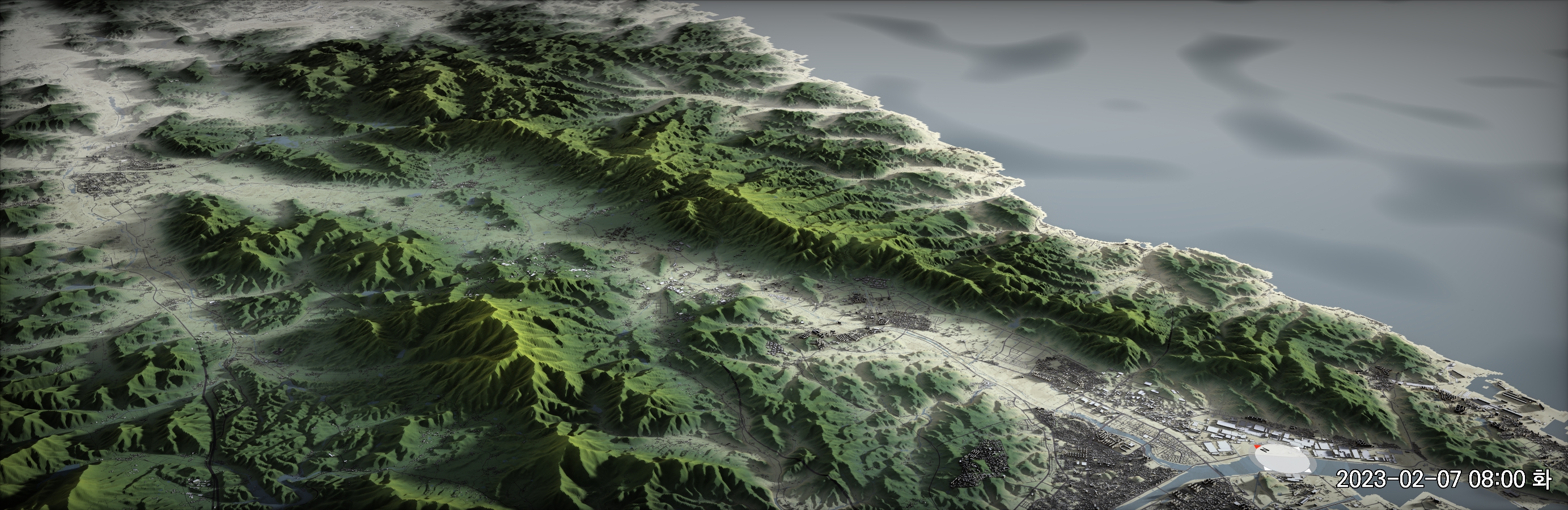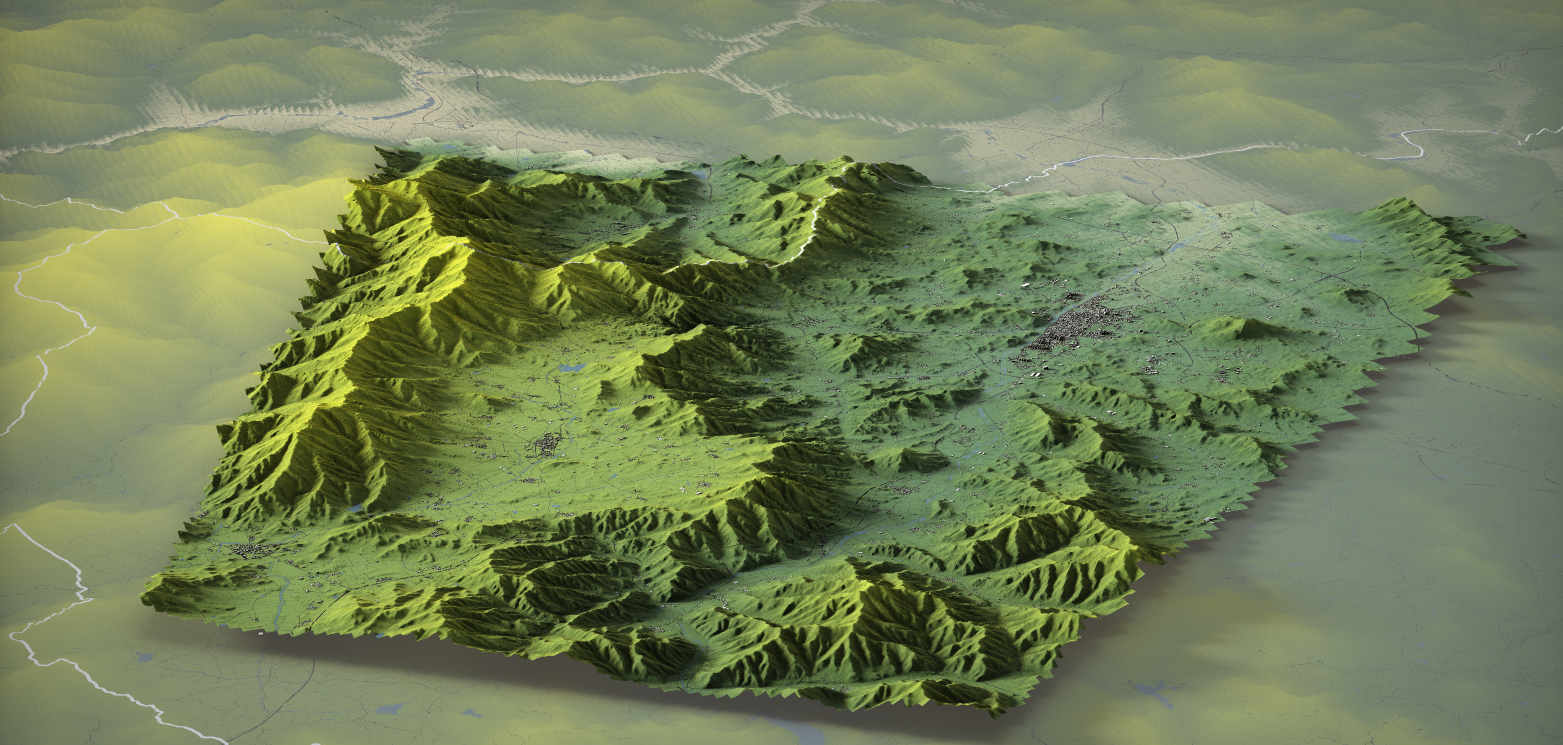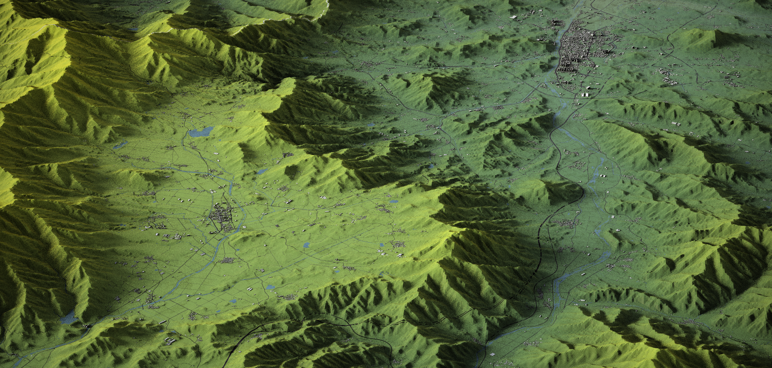 위에서 링크된 메시 셰이더 작업에서는 건물 1766MB, 하천 386MB, 도로 1669MB, 지형 1214MB의 데이터를 사용했다. 아래에서 설명하는 작업에서는 하천과 도로를 지형과 같은 그리드 크기로 잘게 분할하느라 용량이 각각 두 배 가량 늘어났다. 총 7GB 정도의 데이터가 되었다.