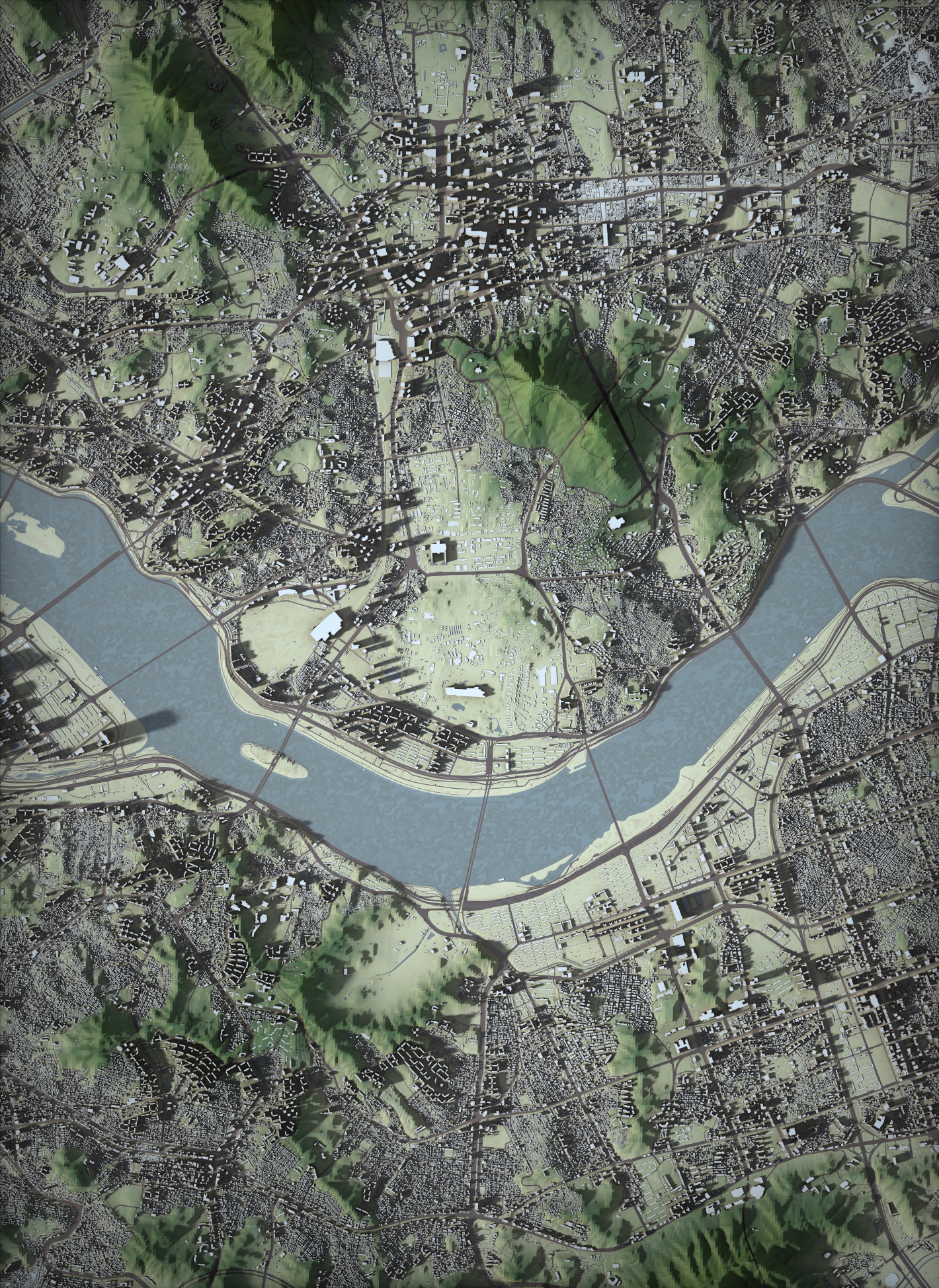 하천과 도로를 다시 분할한 이유는 아래 그림처럼 지형에 묻히는 부분들을 지형과 align 시켜, 표면 위에 잘 드러나게 해주기 위함이다.