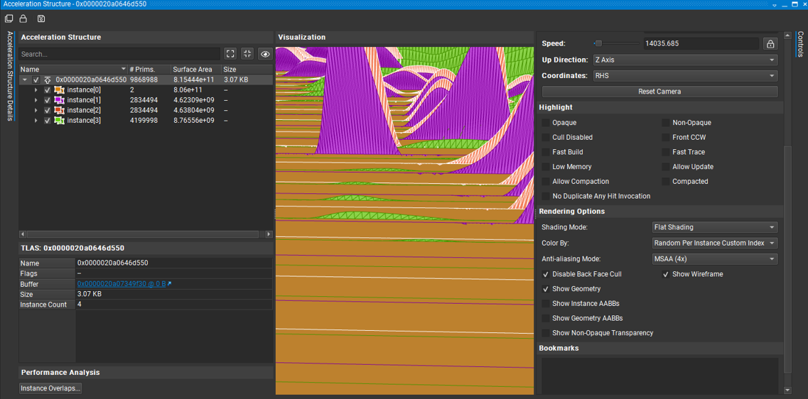 따라서 화면의 물체가 한정적이고 동적으로 움직일 뿐인 화면에서는 TLAS만 갱신해주면 되기 때문에, 훨씬 비용이 적게 든다. 그러나 여기서 구현하는 상황에서는 원래 데이터는 워낙 많고, 화면 한 프레임에 들어오는 삼각형들만 잘라내도 몇천만개가 될 때도 있기 때문에, BLAS에 미리 등록을 해주기는 어려운 상황이다.