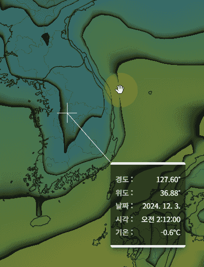windy.com 이나 zoom.earth, earth.nullschool.net 모두 많은 데이터를 볼 수는 있는데 시간 변화를 자연스럽게 보여주지는 못한다. 물론 windy.com이나 zoom.earth의 경우 낮은 줌레벨에서도 고해상도의 데이터를 불러오느라 그랬을 것 같기는 한데(게다가 애니메이션 용으로 데이터를 방출해주면 클라우드 비용도 만만치 않을테니...), 여튼 애니메이션을 만들기 위해 극복해야 할 여러가지 기술적인 목표들을 설정하고 하나씩 해결해 나간 부분이 의미있는 일이었다.