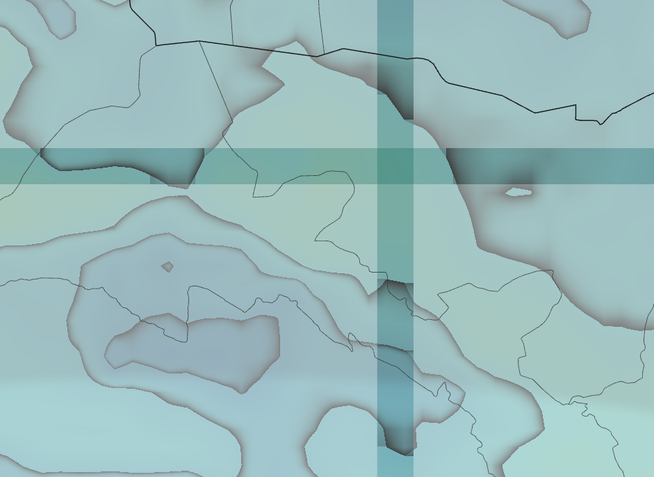 겹치는 부분을 확인해보기 위해 클리핑을 하지 않고 반투명하게 그리면 타일이 겹치는 부분들이 아래처럼 보인다.