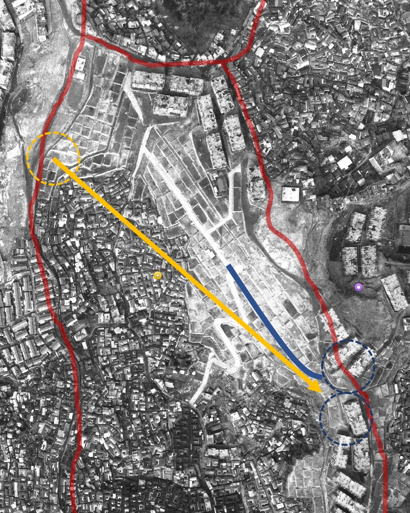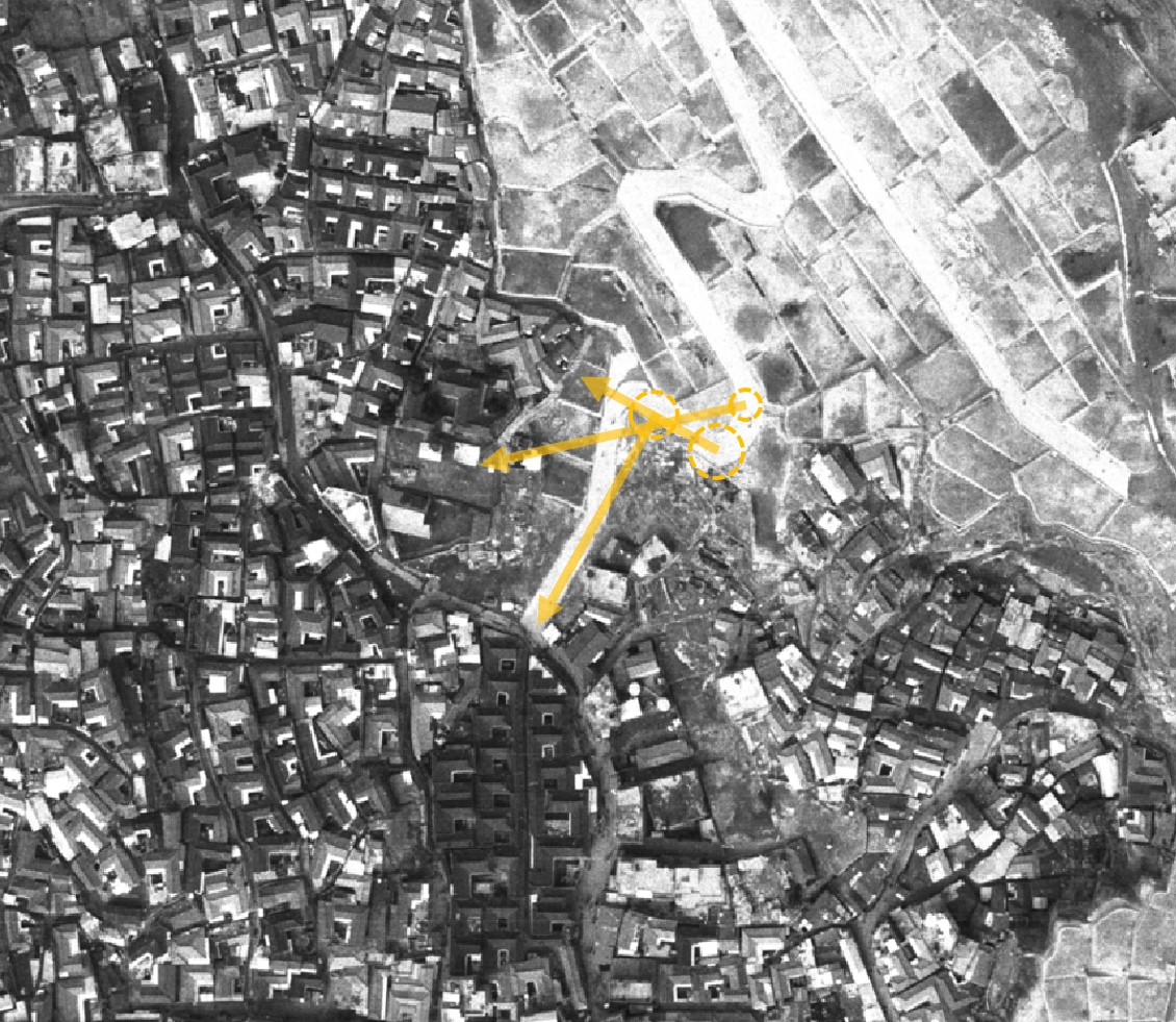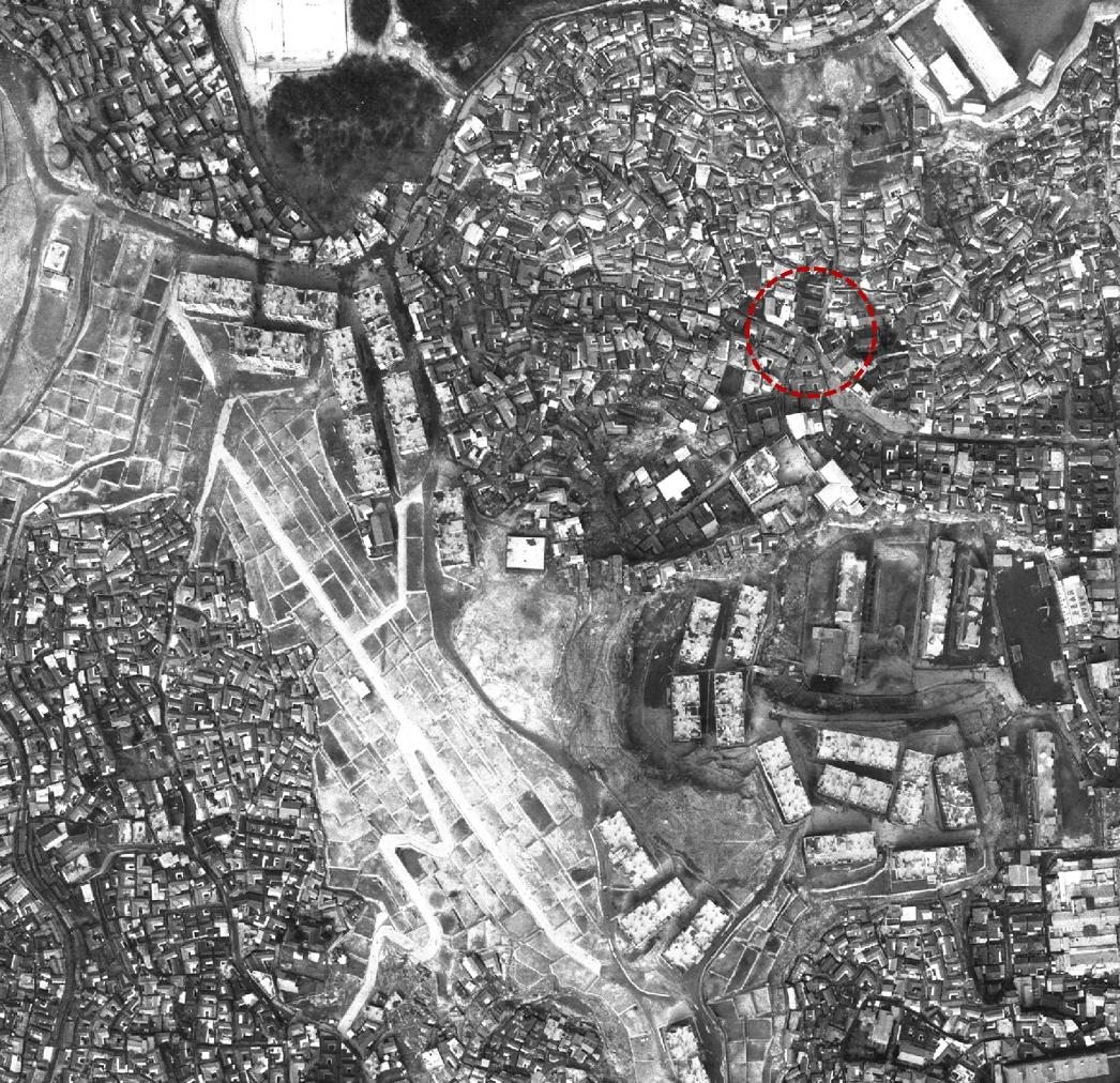 보시다시피 땅 작업을 해 둔 부분이 그대로 똑같이 항공 사진에 남아있다. 시민아파트 각도도 정확히 일치!