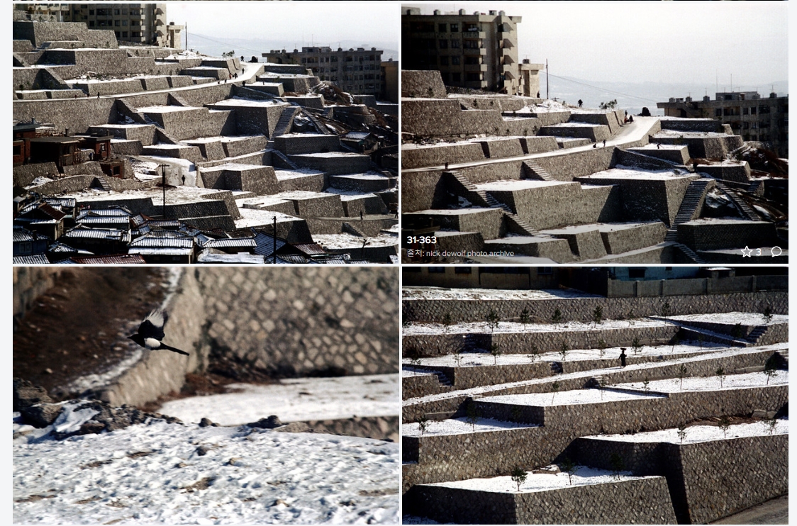 역시 반대쪽 경사면에서 찍었겠지. 아까 1970년대 지어진 건물들을 위한 기단 한가운데 텅텅 빈 큰 길을 걸어가면서 찍었을 것 같다.