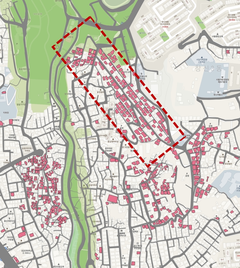 창신동 지역의 경우, 연식이 좀 된 건물들이 많기 때문에 이 사진 중의 몇몇 건물은 살아남아있지 않을까 생각을 했다.