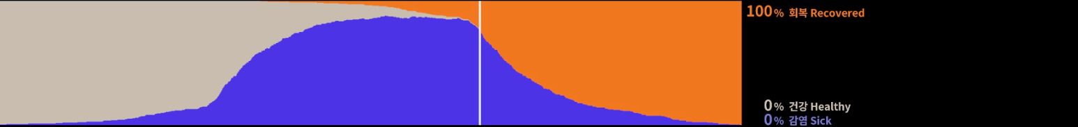 병이 전파되는 정도는 눈에 띄게 줄어들고, 확진자들이 모두 회복되는 순간 깔끔하게 종식된다.