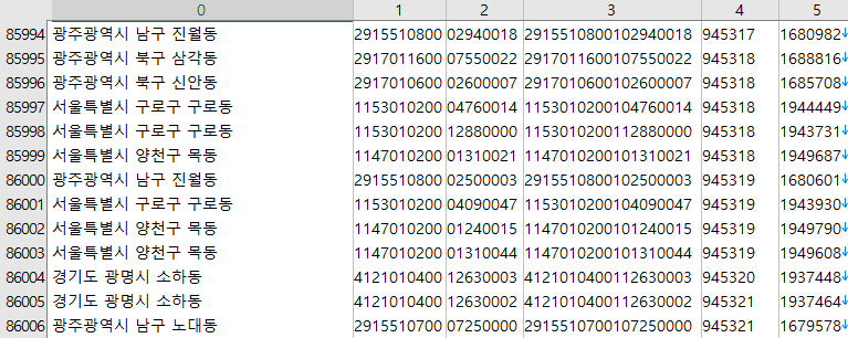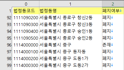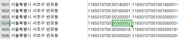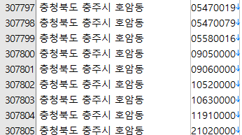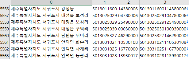 www.code.go.kr 에서 법정동 주소 코드를 다운 받는다.