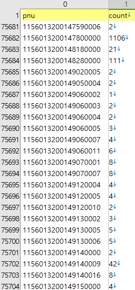 이번에는 아파트 등 번지까지 온전히 있는 주소들을 대상으로 PNU 코드를 만들어낼 차례다. 앞에서 언급한 고유 주소 307,805개를 대상으로 한다.