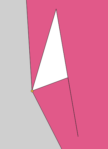 그냥 여기서는 빠르게 수정하는 방법을 택한다. 어차피 토폴로지 오류가 완벽하게 수정된 도형을 만들고자 하는 것이 아니라 오류가 없는 파일로 적절하게 내부 중심점만 구하면 되기 때문에 위에 보이는 정도의 오류는 과감하게 주변 점들을 모두 삭제하는 방식으로 수정해도 전혀 문제가 없다.