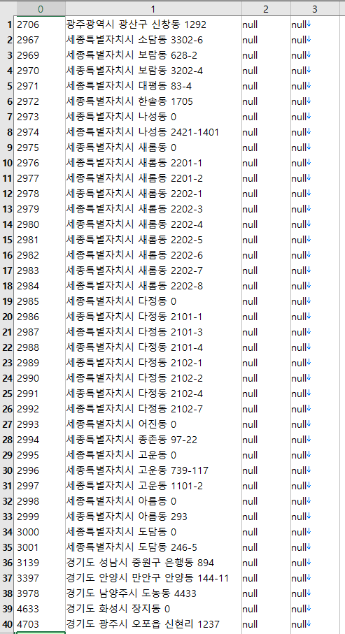 위에 번지가 0으로 들어가 있는 것들은 당연히 그냥 포기하고 법정동 중심점으로 대체시킨다.