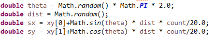 여기서는 비슷하지만 다른 방식으로 좌표값을 만들었다. x,y 좌표가 아니라 극좌표계 형식을 이용하는 방법이다.