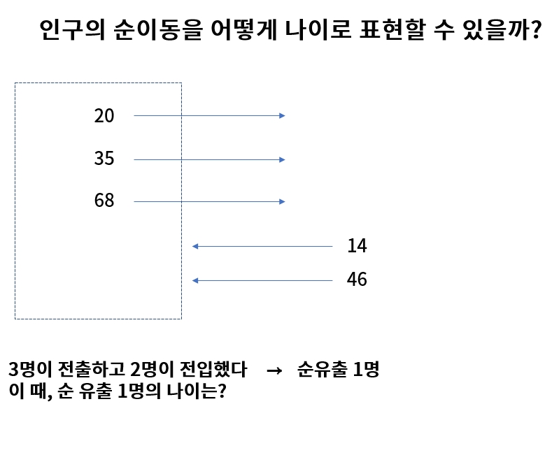 그런데 문제가 있었다. 순이동의 경우 드나든 인구를 빼서 몇 명이 전입인지 전출인지는 말할 수 있는데, 나이의 경우에는 단순하게 설명할 수 없었다. 아래와 같은 경우다.