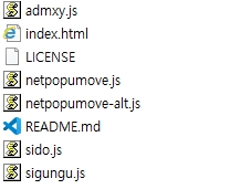 읽어들이는 파일을 netpopumove.js 에서 netpopumove-alt.js로 바꿔주면 된다. 모두 메모장에서 열리므로 내용을 직접 확인해볼 수 있다. 위의 파일이 모두 같은 폴더에 있다면, 수정 후에 index.html을 크롬 등에서 실행시키면 별도의 인터넷 연결 없이도 로컬에서 돌려볼 수 있다.