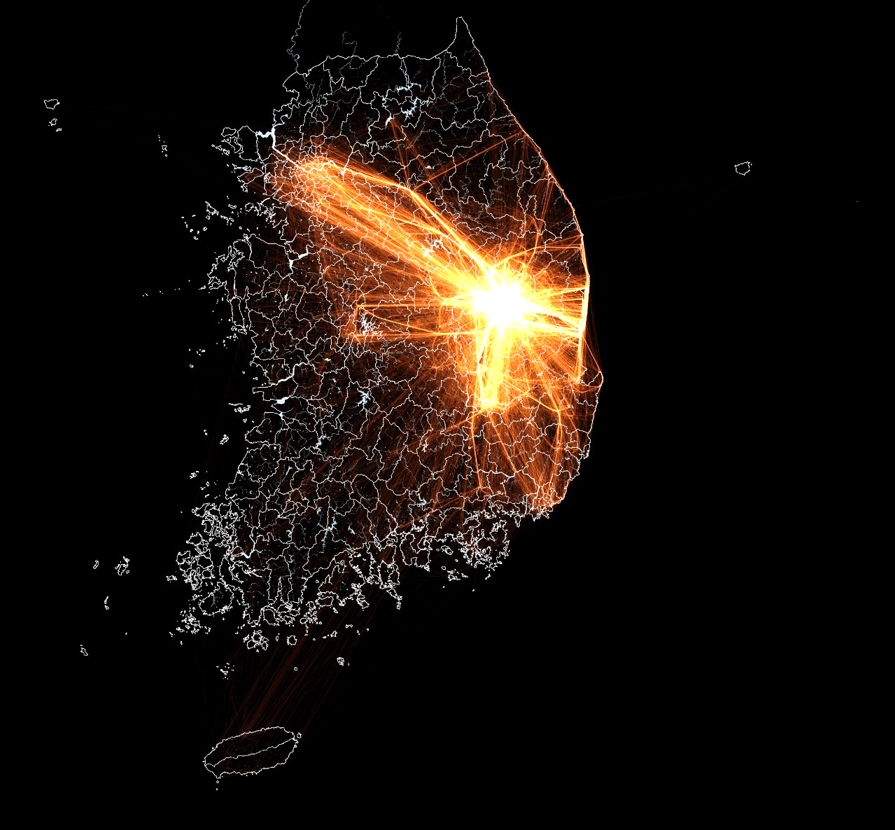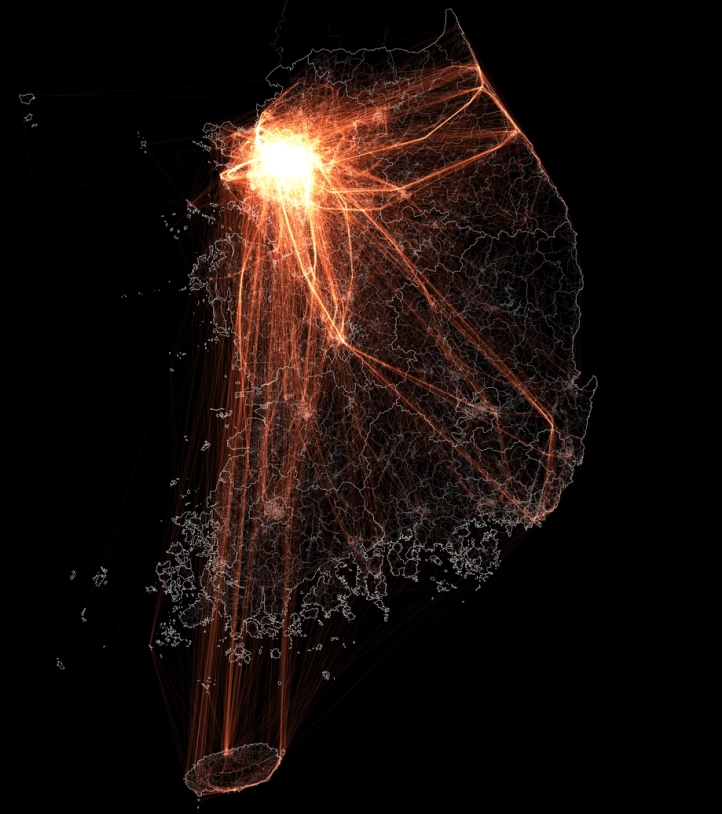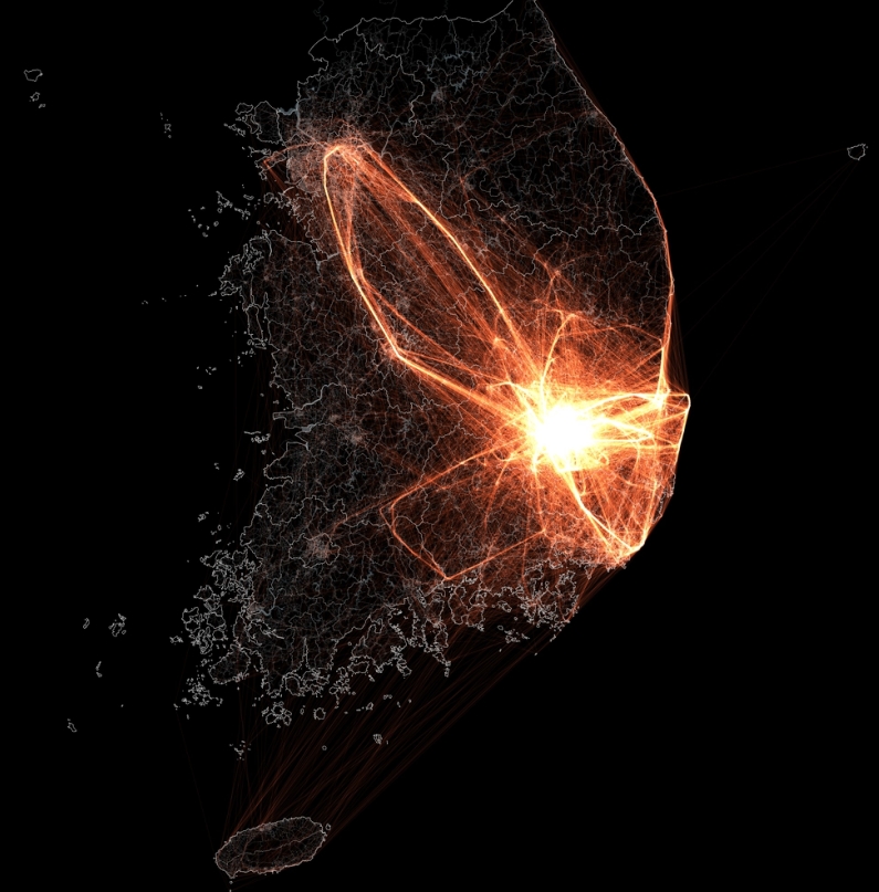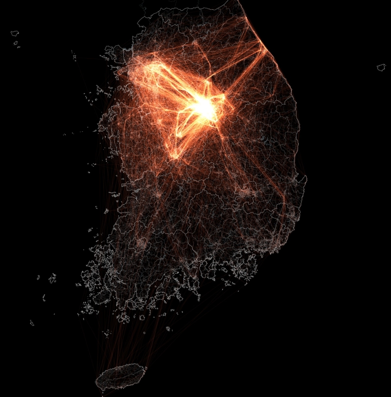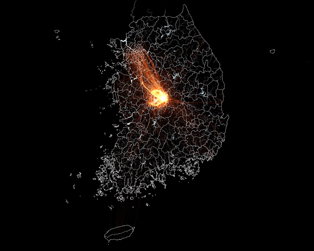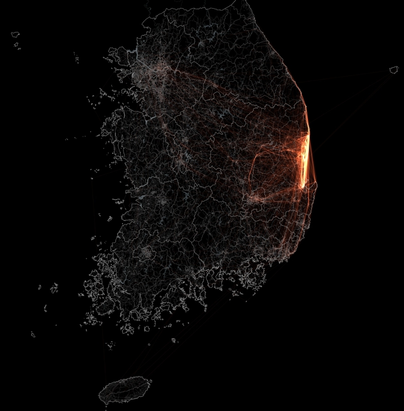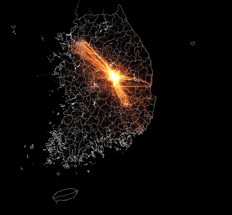 이동 반경이 매우 좁음에도 불구하고 서울쪽으로는 선들이 뻗어나간다. 이 쯤 되면 과연 우리나라 사람들에게 서울은 무엇인지 다시 생각해보게 된다.