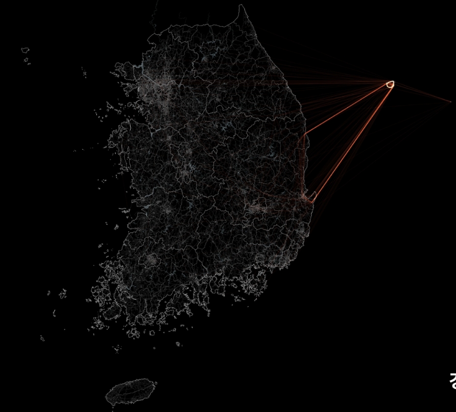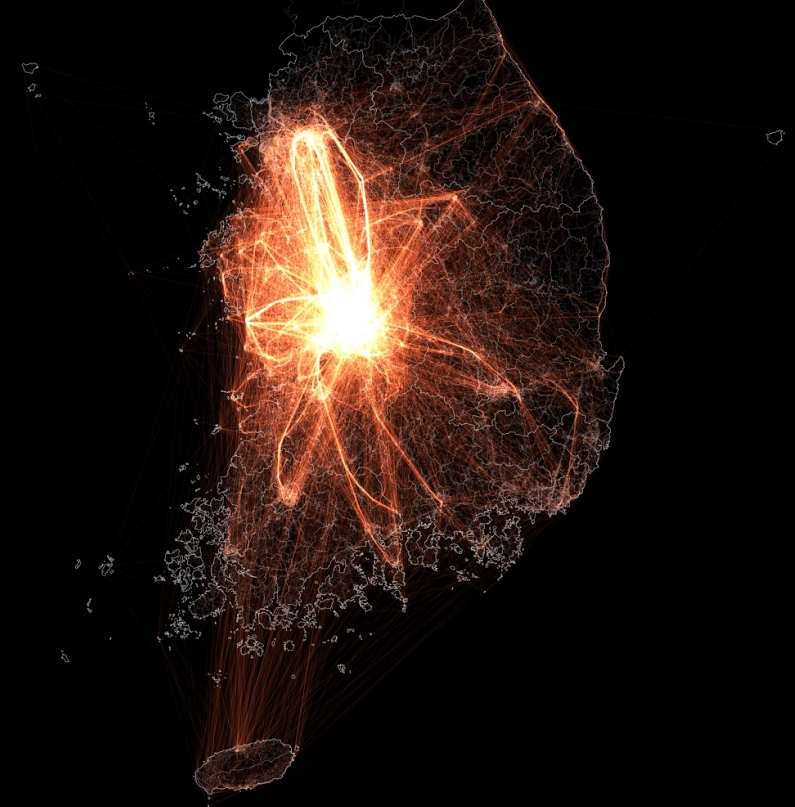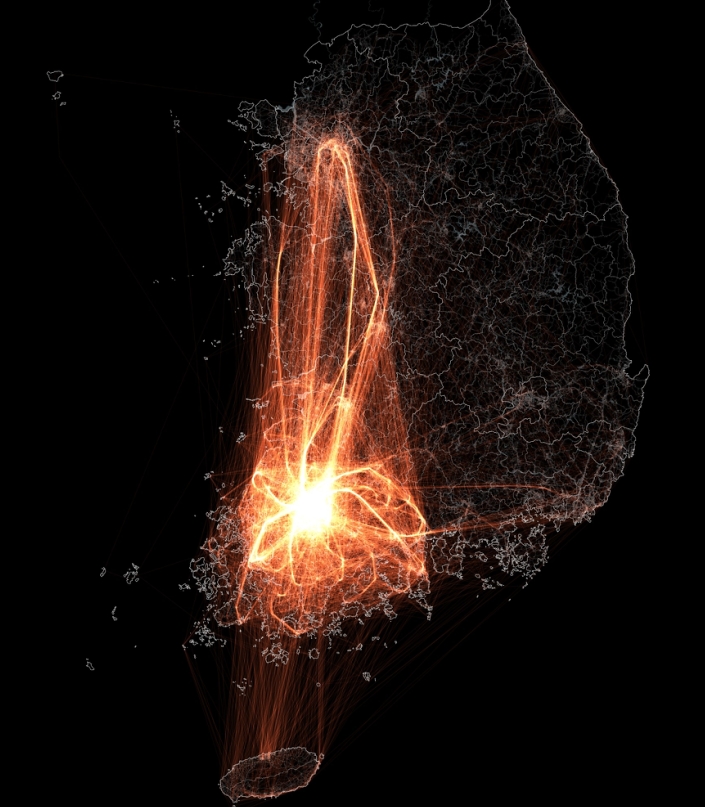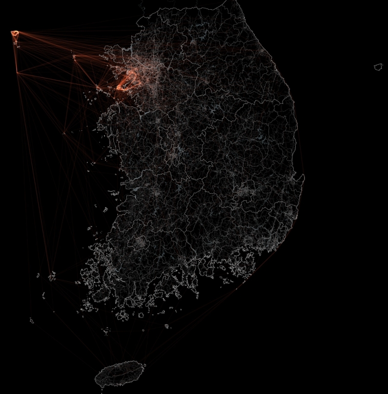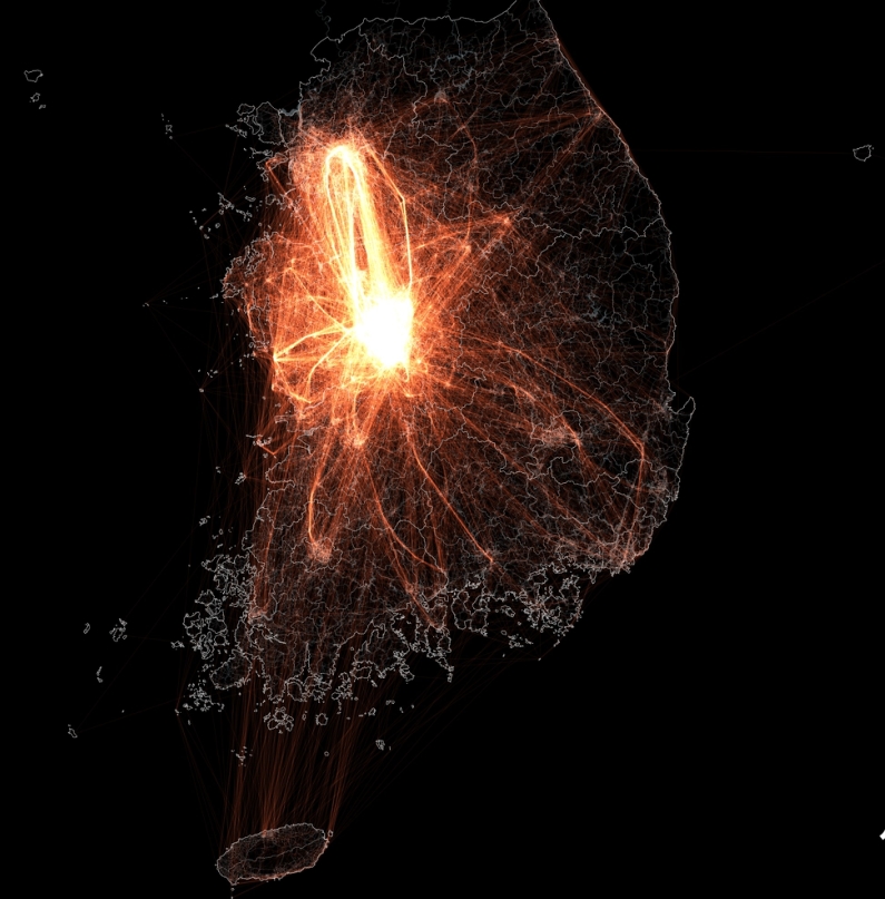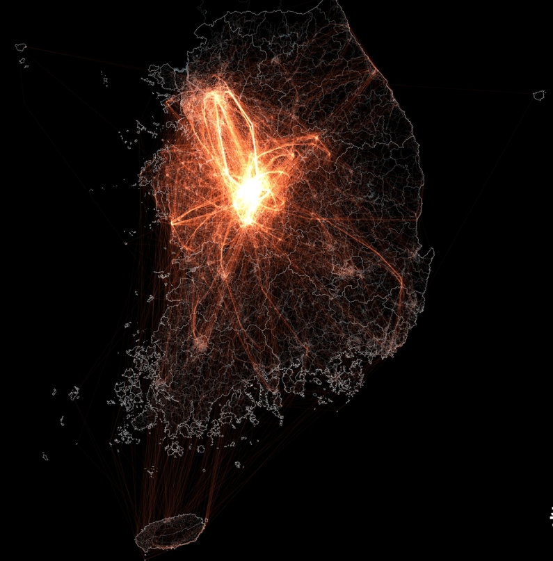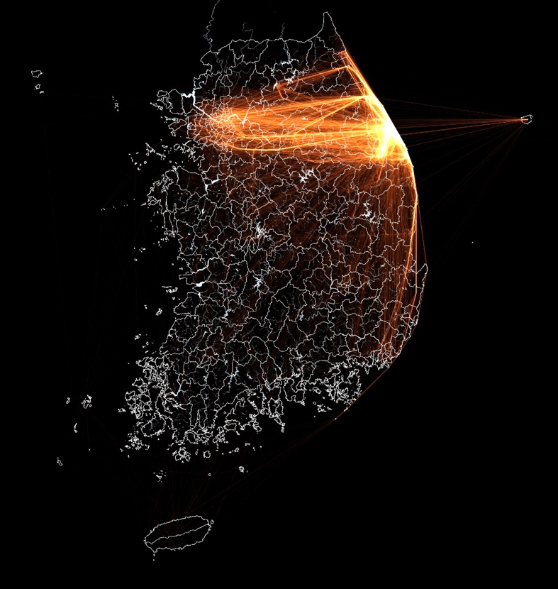 이동 반경이 매우 좁음에도 불구하고 서울쪽으로는 선들이 뻗어나간다. 이 쯤 되면 과연 우리나라 사람들에게 서울은 무엇인지 다시 생각해보게 된다.