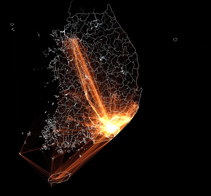 사람의 움직임이지만, 아니, 사람의 움직임이기 때문에 지역과 지역의 관계를 설명하기에 이만한 데이터도 없다. 주로 교통 연구하는 사람들이 많이 관심을 가지던데, 사회학의 여러 분야나 도시 혹은 지역계획쪽에서도 충분히 유용하게 사용할 수 있을 것 같지만... 데이터 접근성이 높지 않아서 그런지, 아직 연구에 쓰인 사례나 정책에 밀착되어서 이용한 사례들을 많이 들어보지 못한 것 같다.