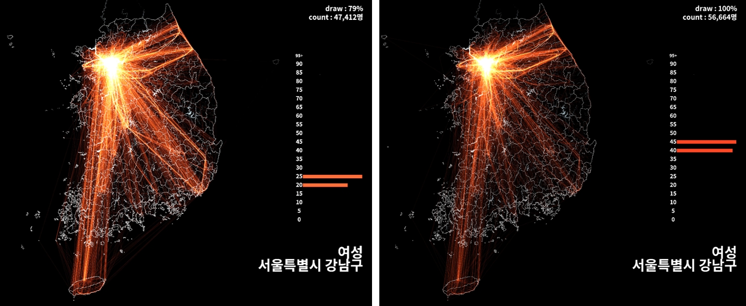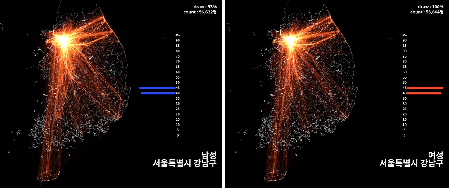 이번에는 강남구 거주자 중 40대 남녀의 궤적