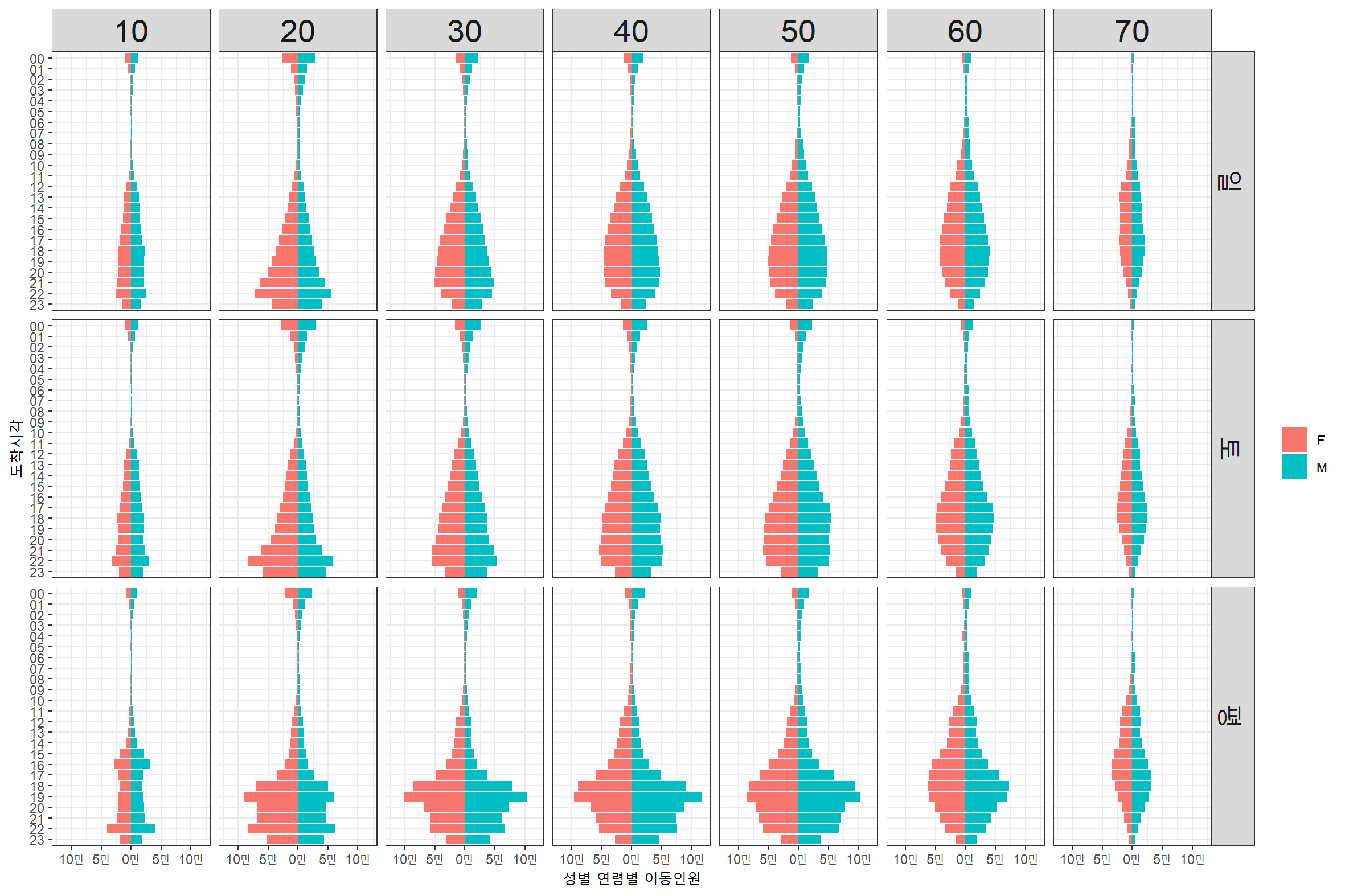 서울시에서 '생활이동' 데이터를 공개했다. KT의 휴대폰 시그널을 바탕으로 언제 어디서 어디로 어떤 사람들이(성연령) 이동했는지에 대한 데이터다.