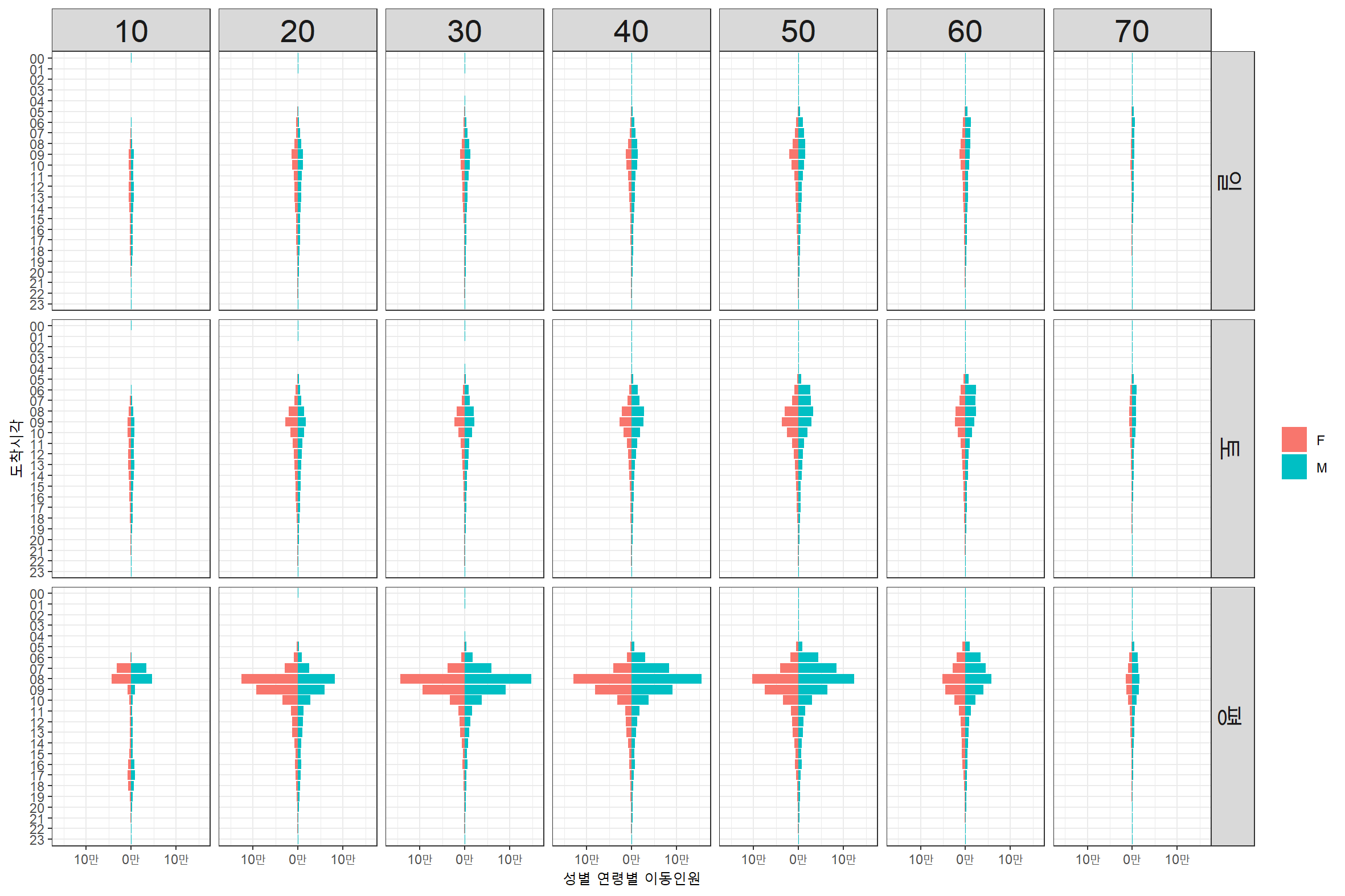 공개된 형식은 한 달을 기준으로, 요일별, 시간대별, 행정동별, 성별, 연령별 이동량이 있는데, 부가적인 속성을 통해 출근 혹은 통학 이동인지도 알 수 있다. 서울시 빅데이터 캠퍼스에서는 좀 더 상세한 단위의 데이터를 다룰 수 있다고 한다.