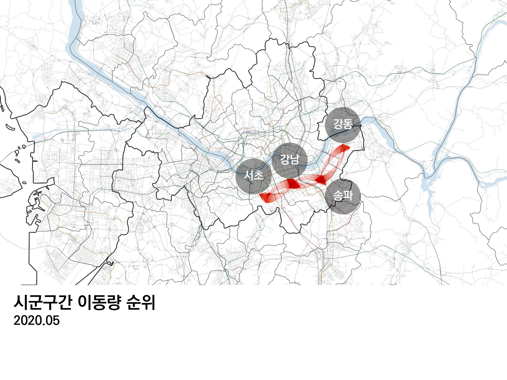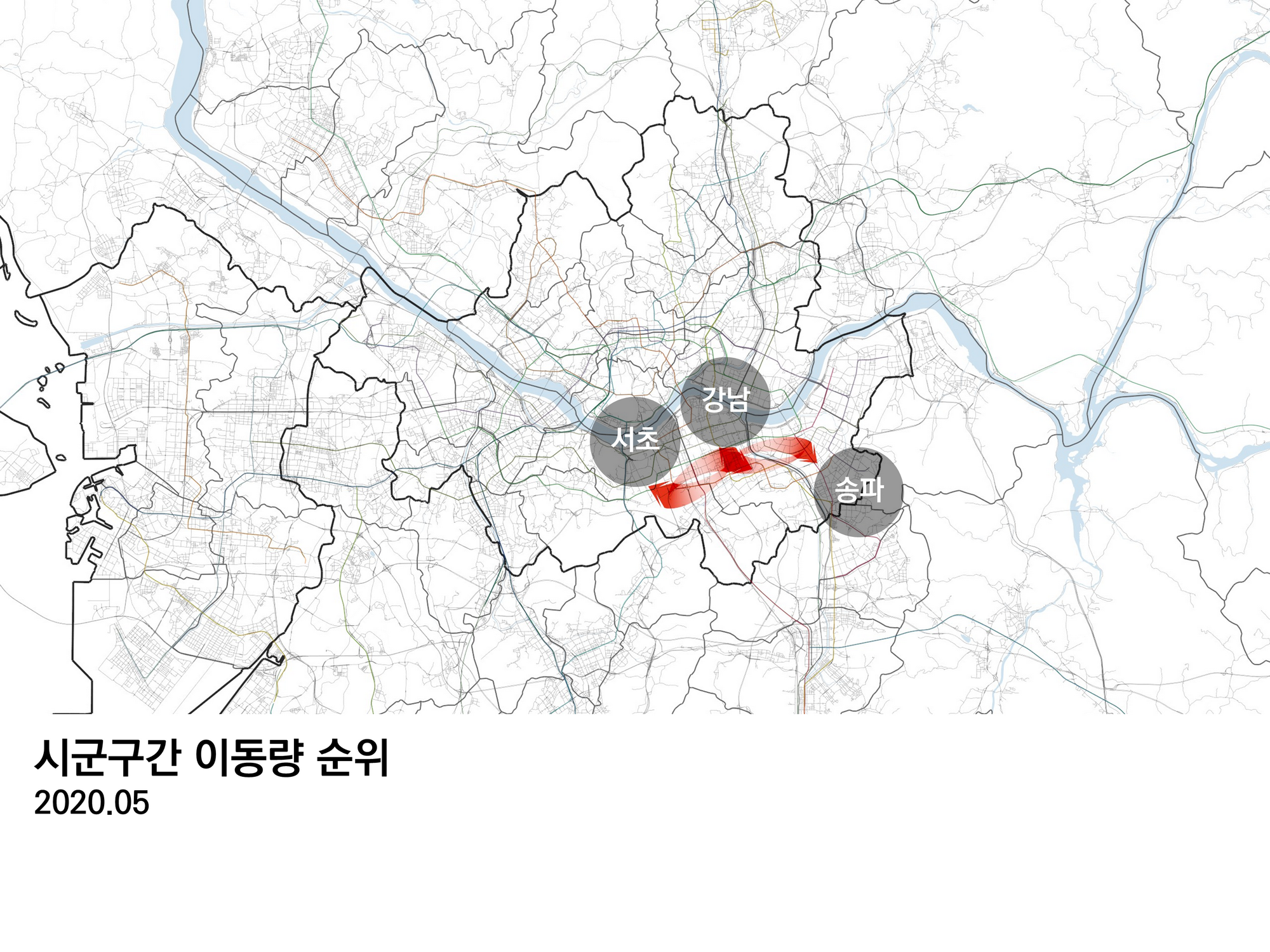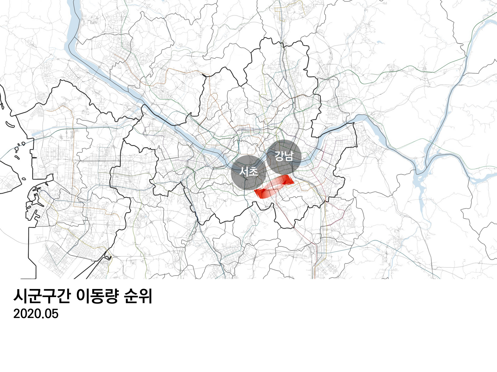 가장 이동량이 많은 곳은 서초구와 강남구다.