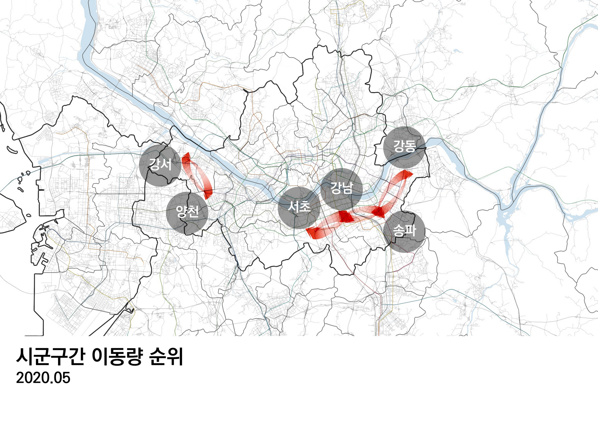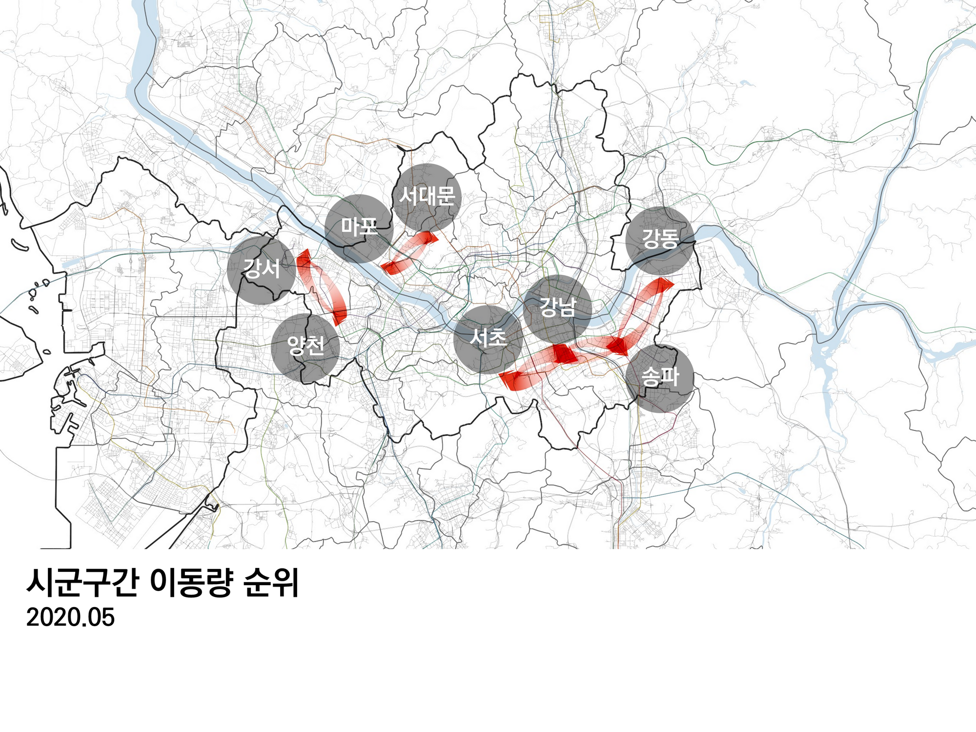 서울과 연관된 이동만 있으므로, 강원도에서 경상북도로 이동한 데이터는 포함되지 않는다. 그림에서 모든 이동은 시계방향이다. 도착지점으로 갈수록 약간 굵어진다.