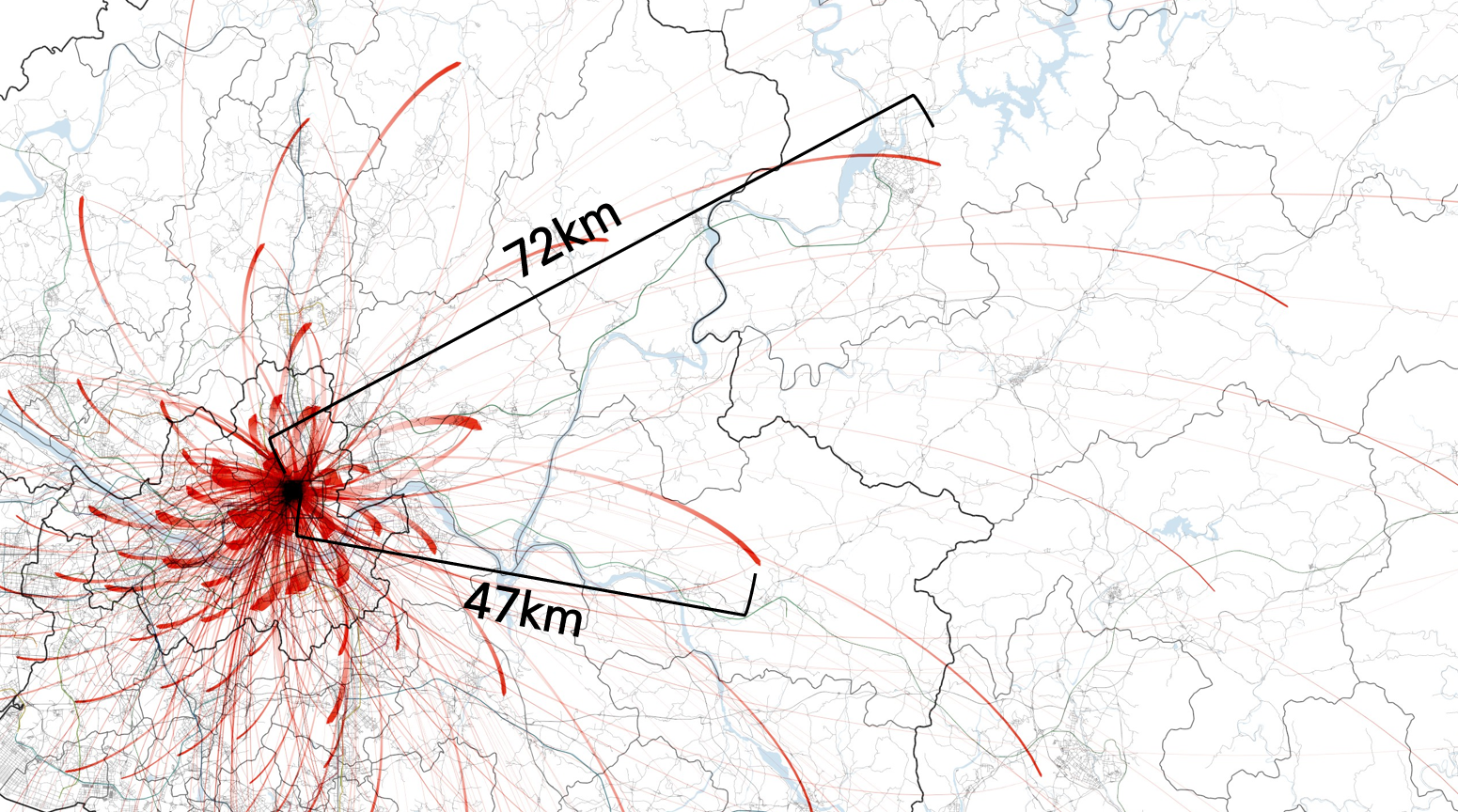 서울 은평구에 살든, 양천구에 살든, 강동구에 살든, 모든 이동들을 동일하게 취급한 후, 다시 거주지와의 거리에 따라서만 집계한 것이다.
